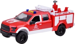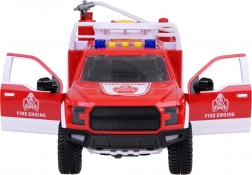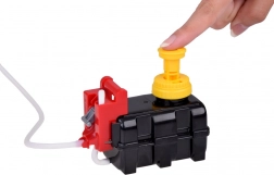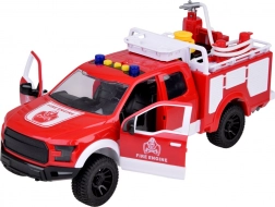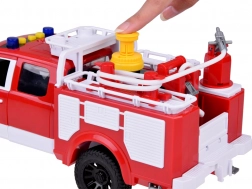 Z gumijasto špricajočo cevjo, ki jo lahko priključite na vodno rezervoar vozila, lahko otroci uživajo v realističnem gašenju požarov.