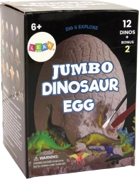Jajce ima dimenzije 10 cm x 10 cm x 15 cm in vsebuje 12 dinozavrov.