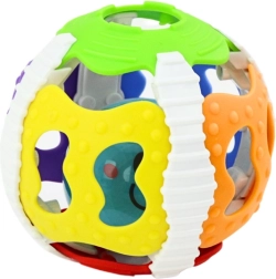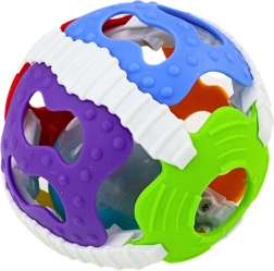 Glavna atrakcija te žoge je plastična kroglica znotraj, ki reagira na gibanje otroka. Ob manipulaciji z žogo oddaja zvoke in sveti, kar pritegne otrokovo pozornost in stimulira njegove slušne ter vidne čute. Ti interaktivni efekti ne le zabavajo, temveč tudi pomagajo pri razvoju senzorične percepcije in motorične koordinacije majhnih otrok.