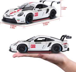 Model ima realistične potiske in grafiko Porsche RSR, ki poudarjajo njegov dirkalni značaj. Gumirane dirkalne pnevmatike in vodljiva sprednja kolesa prispevajo k realističnemu videzu in funkcionalnosti modela, kar ga naredi izjemen dodatek za vsakega ljubitelja avtomobilov.