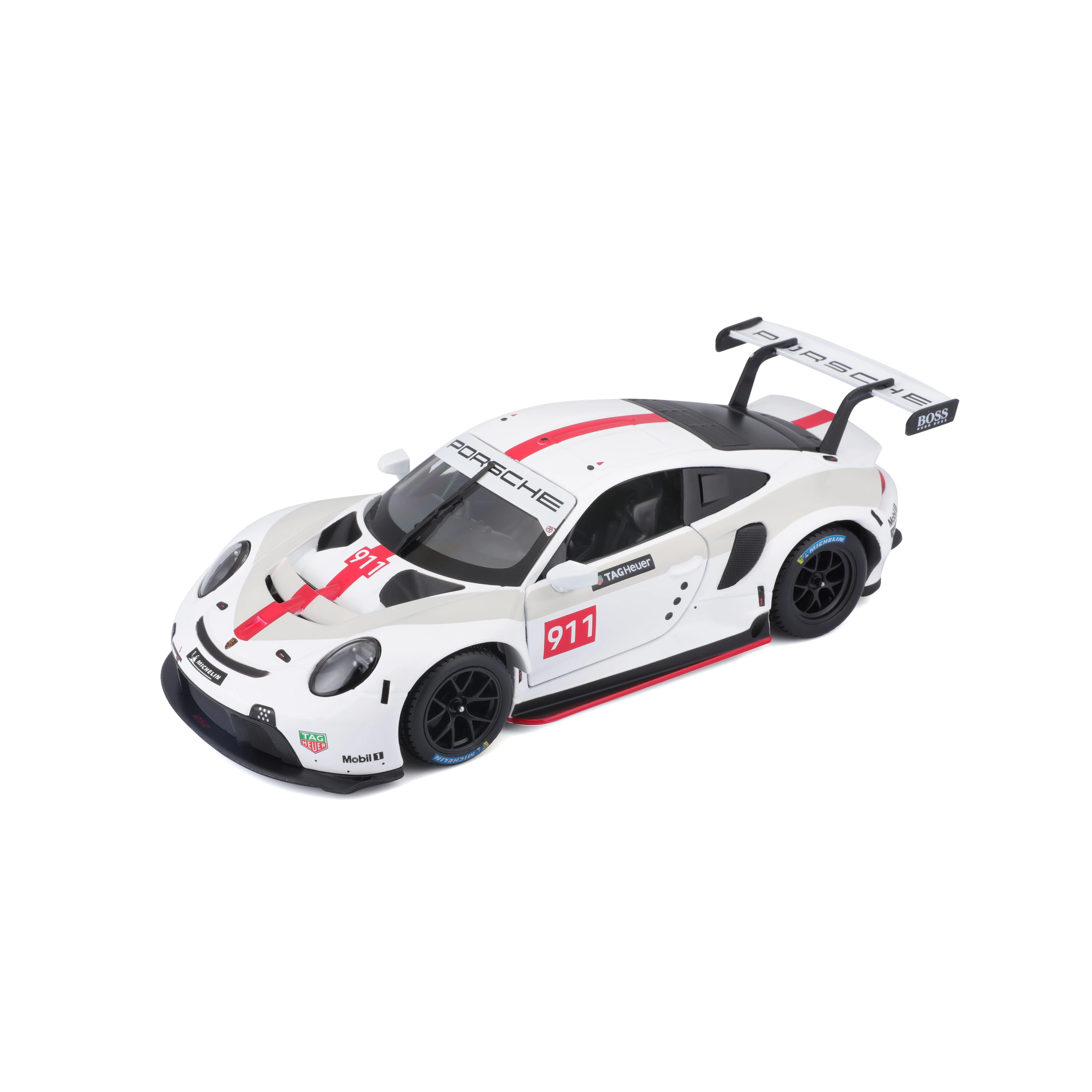 Potopite se v svet motošporta z modelom Porsche 911 RSR GT znamke Bburago. Ta model avtomobila je narejen iz kovine s kakovostnimi plastičnimi dodatki in se ponaša z elektrostatičnim lakiranjem, ki površini daje izjemno kakovost. Vrata avtomobila se lahko odprejo, kar omogoča vpogled v podrobno izdelano notranjost, vključno z avtentično armaturno ploščo.