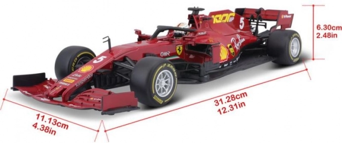 Model spominja na enosedežnik s številko 5, s katerim je nastopal Sebastian Vettel. Odličen kos za navijače FERRARI in formule 1.