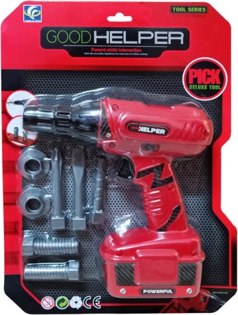 Ta set vsebuje realistični akumulatorski vrtalnik, ki ne le da izgleda kot pravi, ampak se tudi ob pritisku na gumb vrti in oddaja avtentične zvoke vrtanja. Vsebuje zamenljive svedre in vijake, kar dodaja k realističnosti igre.