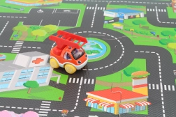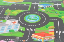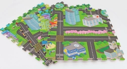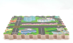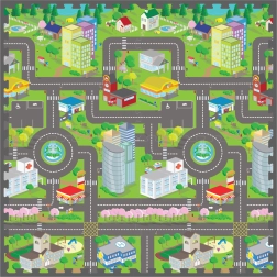 Ta penasta preproga – sestavljanka z motivom mesta spremeni sobo v igrivo in varno okolje. Zahvaljujoč mehki EVA peni ublaži udarce, izolira mraz s tal ter otrokom nudi udoben prostor za plazenje, sedenje in prve korake.