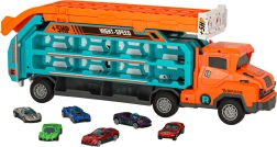 Tovornjak udobno sprejme in prepelje do šest malih avtomobilčkov – idealno za shranjevanje, organizacijo in igro na poti.