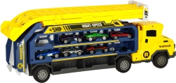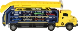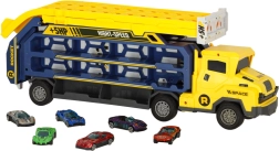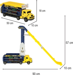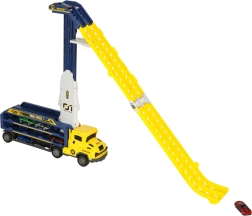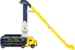 Ta večnamenski prevoznik avtomobilov se v hipu spremeni v impresivno dvopasovno dirkalno stezo. Otroci lahko prevažajo do šest malih avtomobilčkov in jih nato spustijo po vzporednih trasah za napete dirke. Privlačna rumeno-modra izvedba vabi k igri ter spodbuja fino motoriko in koordinacijo oko–roka.