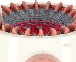 Z 22 iglami stroj obvlada krožno in ravno pletenje. Kompaktne mere 20 × 17 cm in notranji premer 12,5 cm so kot nalašč za hitre projekte, kot so kape, nagolenčniki, šali ali otroški dodatki. Del paketa sta tudi 2 klopki preje, igla in kvačka za lahko všivanje in zaključevanje izdelkov.