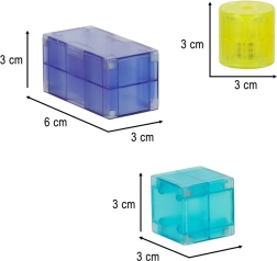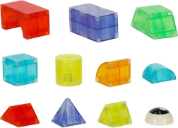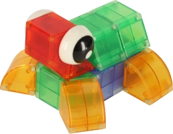 Prosojni koščki v številnih oblikah in barvah podpirajo ustvarjalno gradnjo od preprostih modelov do kompleksnih 3D konstrukcij.