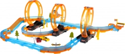 Uživajte v razburljivem dirkanju z veliko dirkalno stezo, ki vsebuje 48 delov. Ta komplet vključuje tri vertikalne zanke in ostre zavoje, ki poskrbijo, da avtomobili varno ostanejo na progi zahvaljujoč zaščitnim barieram. Avtomobilčki z brezmotornim pogonom so del paketa in zagotavljajo obilo zabave.