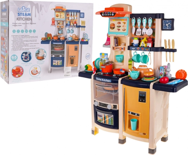 Ta interaktivna kuhinjica je izdelana iz visokokakovostne plastike in je zasnovana v živahnih barvah, ki spodbujajo otroke k igri. Na delovnem pultu se nahaja interaktivna kuhalna plošča z gorilniki. Z obračanjem enega gumba zaslišite zvok kuhanja, z drugim pa zvok pečenja, vse v spremstvu osvetlitve gorilnikov. Pipa resnično spušča vodo, kar otrokom omogoča pomivanje igračkaste posode. Del kompleta so tudi imitacija hladilnika z odpirajočimi se vrati in dozirnikom vode, osvetljena pečica in pomivalni stroj, kavni aparat, ventilacijska plošča z lučkami in zvoki ter številni drugi dodatki.