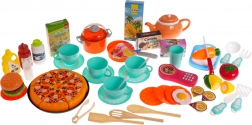 Pečica, hladilnik, pomivalni stroj, kavomat, telefon in desetine dodatkov: lonci, ponev, pripomočki, pijače, živila na ježka ter kartice z recepti. Vse za popolno igralno kuhinjo.