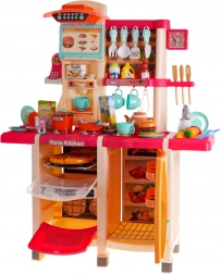 Iz vgrajene pipe voda resnično teče, zato si lahko mali kuharji splakujejo posodo in se na igriv način učijo navad iz prave kuhinje.