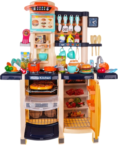 Ta interaktivna kuhinjica spremeni sobo v mali kulinarični studio. Z obračanjem gumbov se prižgejo osvetljeni gorilniki in sprožijo zvoki cvrenja in kuhanja. Iz resnično delujoče pipe teče voda, zato lahko otroci »pomivajo posodo« kot v pravi kuhinji. Del kompleta je tudi odpirajoča se pečica z lučjo in zvokom, hladilnik s posnemanjem dozirnika vode, pomivalni stroj in aparata za kavo.