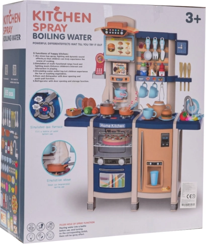 - Svetlobni in zvočni učinki, tekoča voda iz pipe, odpirajoča se pečica, hladilnik s posnemanjem dozirnika, pomivalni stroj, aparat za kavo, ventilatorska plošča, telefon z zvoki