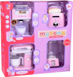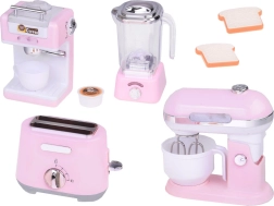 Set malih kuhinjskih naprav prinaša v vašo otroško kuhinjo eleganco in funkcionalnost. Izdelano iz kvalitetne plastike z detajli, ki popolnoma posnemajo prave naprave. Nežna rožnata barva z belimi in kromiranimi dodatki daje igračkam šarm in stil.