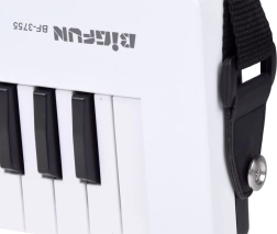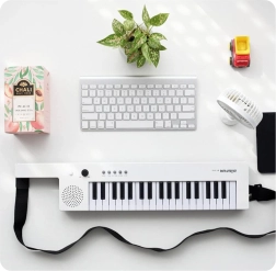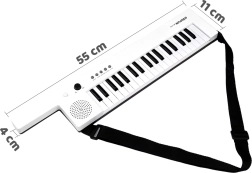 Za začetek in redno vadbo poskrbi bogata oprema: 4 toni, 4 ritmi in 10 demo skladb. Praktične funkcije, kot so vibrato, nastavitev glasnosti in stikalo on/off, zagotavljajo udobno igranje brez odvečnih zapletov. Zahvaljujoč polnjenju prek USB z vgrajenim akumulatorjem 3,7 V odpade skrb za baterije.