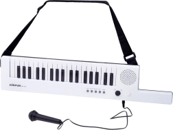 Razvijte otroško ustvarjalnost s kompaktnim elektronskim glasbilom, ki je pripravljeno za igranje kadarkoli in kjerkoli. Vgrajeni zvočnik, priloženi mikrofon in ramenski trak spremenijo klaviature v trendovski »keytar« za male glasbenike. Upravljanje je intuitivno in spodbuja odkrivanje zvokov in ritmov.