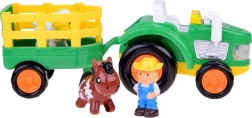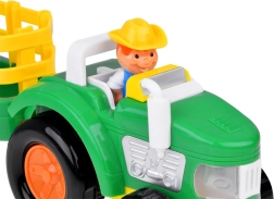 Spremenite sobo v majhno kmetijo z barvitim traktorjem in snemljivo prikolico. Robustna plastična izvedba, enostaven oprijem ter interaktivni elementi z zvoki in lučmi spodbujajo domišljijo, pripovedovanje zgodb in razvoj fine motorike.
