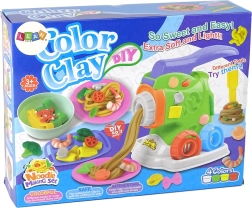 Stroj za testo po svoji strukturi spominja na pravi stroj za testenine, zato si lahko vaš mali kuhar v kuhinji privošči nekaj eksperimentiranja, ne da bi zapravljal pravo hrano. Glavni del stroja je stiskalnica, s katero lahko iztisnete kroglico testa in ji date specifično obliko. Zamenljive šobe omogočajo ustvarjanje več različnih vrst testenin. Na voljo sta oblika standardnih špagetov in testenin v obliki pujseka.