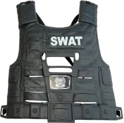 Taktični jopič, radijska postaja, lisice, piščalka, značka in tok omogočajo otrokom, da se vživijo v akcijo kot pravi policisti ali enota SWAT.