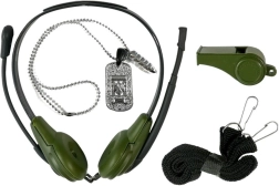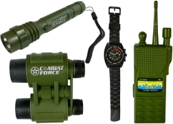Dalečegled, radijska postaja, svetilka, očala in drugi dodatki spodbujajo domišljijo, timsko delo in ciljan trening na priloženem tarču.