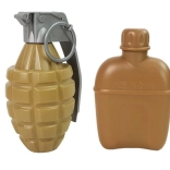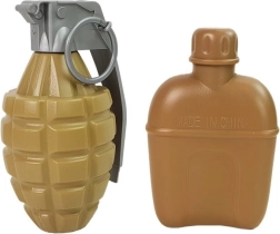 Granat, daljnogled, kompas, nož, značka, tok, radijska postaja in identifikacijska ploščica – vse v enotnem vojaškem slogu za raznoliko igro.