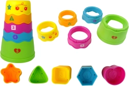 - Svetlobni sortirnik oblik, tobogan za kroglice, zobniška kolesca, vrtljivo ropotuljico, 5-nadstropna piramidka