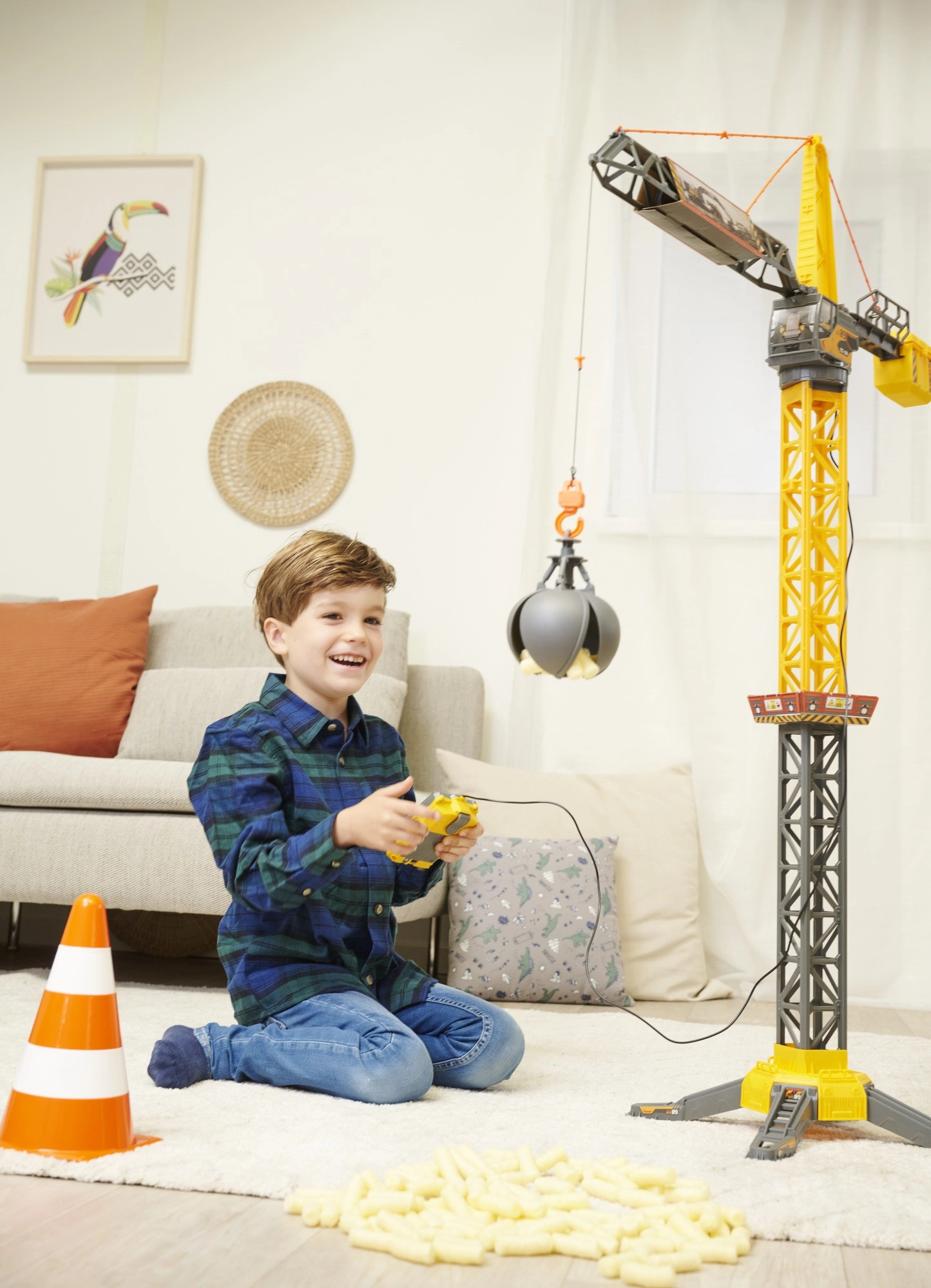 Otroški žerjav VOLVO od Dickie Toys prinaša pristno gradnjo v otroško sobo. Zahvaljujoč 360° vrtljivi roki, funkcionalnemu vitlu in rušilni krogli, ki se odpre in deluje kot klešče, otroci z lahkoto dvigujejo in prenašajo manjše predmete. Robustna konstrukcija in stabilna osnova zagotavljata varno igro.
