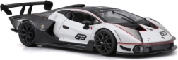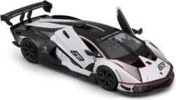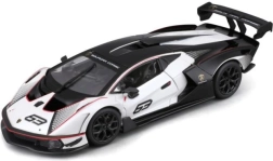 Model Lamborghini Essenza SCV12 podjetja Bburago ponuja vrhunsko kombinacijo detajlov in kakovosti. Zahvaljujoč die-cast kovinski karoseriji in skrbno izdelanim aerodinamičnim elementom izstopa na vsaki polici in v vsaki zbirki. Belo dirkalno izvedbo s kontrastnimi poudarki in številko 63 poudarja pristni dirkalni značaj.