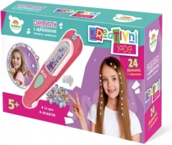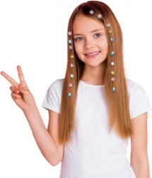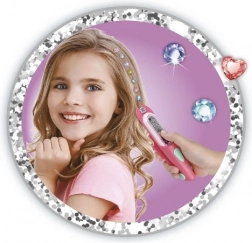 Ta zabaven komplet omogoča otrokom, da si ustvarijo izvirne okraske za lase brez lepila in nereda. Postopek je preprost: diamant vstavite v zgornji del aplikatorja, v spodnji del sponko, prislonite nežno pramen las in pritisnite – diamant ostane pritrjen s pomočjo sponke. Enostavno, hitro in efektno.