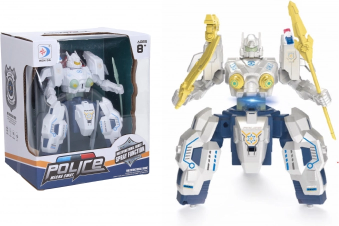 Zabaven in akcijski policijski RC robot višine 19 cm prinaša dimne učinke, preprosto upravljanje z ročicami in USB polnjenje. Idealna igrača za otroke, ki obožujejo robote, luči in akcijo – na voljo v dveh barvah.