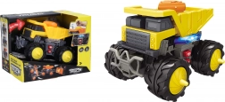 Na nakladalni plošči in ob straneh boste našli upravljalne gumbe za učinke, kot so zvok motorja, glasba ter vožnja naprej in nazaj. Igrača je pripravljena za uporabo takoj po razpakiranju, saj so 3x AAA baterije priložene.