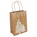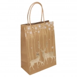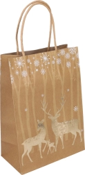 Stilna božična darilna vrečka velikosti M (21 × 27 × 11 cm) za preprosto in elegantno zavijanje daril. Na voljo v 4 različicah motivov, ki vašemu darilu dodajo praznično vzdušje in prihranijo čas pri zavijanju.