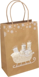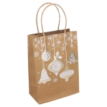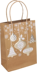Ta čvrsta darilna vrečka z božičnim motivom je idealna za zavijanje manjših do srednje velikih daril. Zaradi kakovostne izdelave in praktičnih ročajev je prenašanje udobno in varno. Slogovna zasnova poudari praznično razpoloženje in razveseli že ob izročitvi.