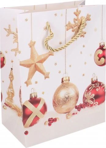 Stilna božična darilna vrečka velikosti L razveseli vsakogar, ko želite darilo predati elegantno in brez skrbi. Idealna za bolj prostorna darila, trpežna izvedba in praznični dizajn. Na voljo so 4 različice motivov.