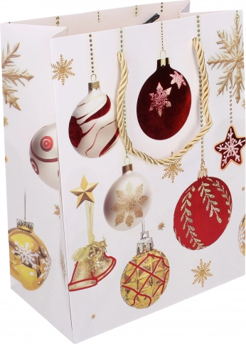 Stilska božična darilna vrečka v velikosti M navdušuje s praktičnim formatom 26 × 32 × 10 cm in modernimi prazničnimi motivi. Idealna za hitro in elegantno zavijanje daril. Na voljo so 4 oblikovne različice za popolno uskladitev z vsebino. Trpežen material in priročen ročaj zagotavljata enostavno in varno prenašanje.