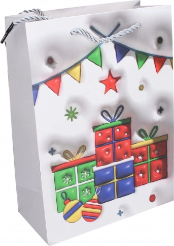 Božična darilna vrečka S (18 × 24 × 8,5 cm) v 4 motivih. Čvrsta izdelava, eleganten videz in idealne mere za majhna darila.