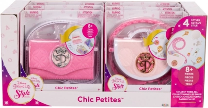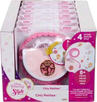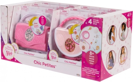 Odkrijte svet stila z mini torbicami Disney Chic Petites, ki jih navdihujejo prave luksuzne torbice. Popolne za male modne ikone, ki želijo imeti vedno pri roki svoje najljubše igralne dodatke. Vsaka torbica je zasnovana z mislijo na eleganco in vsebuje več kot 8 edinstvenih dodatkov, med katerimi so: