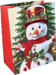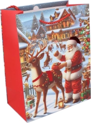 Ta božična darilna vrečka olajša zavijanje in vašim darilom doda reprezentativen videz. Zaradi praktičnih mer vanjo spravite knjige, kozmetične komplete, tekstil in manjše škatle. Kakovosten material in čvrsti ročaji zagotavljajo udobno in varno prenašanje.