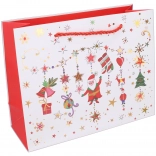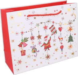 Elegantna darilna vrečka velikosti S za vaše praznično pakiranje. Idealna za manjša darila in kozmetiko, trden ročaj in kakovosten papir zagotavljata enostavno in varno prenašanje. Na voljo v 4 božičnih različicah, ki poudarijo praznično vzdušje in darilom dodajo stilsko embalažo.