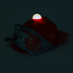 Čelada je zasnovana tako, da izgleda kot prava gasilna čelada z dekorativnim znakom in svetlo rdečo barvo.