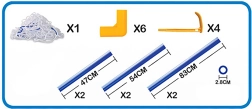 Komplet vsebuje močne plastične cevi in dodatke, ki zagotavljajo stabilnost gole med igro.