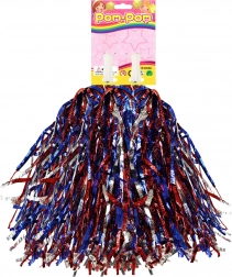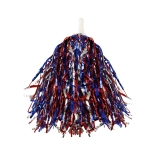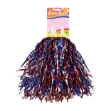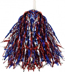 Izdelan iz kakovostnih materialov, ta pom-pom vključuje modre, rdeče in srebrne sijoče trakove, ki dodajo vaši prireditvi izjemen videz. Praktičen plastičen ročaj zagotavlja udoben oprijem in preprosto uporabo.