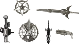 Robot je opremljen z odstranljivimi deli, kot so kolesa in mehanske roke, kar omogoča različne položaje.
