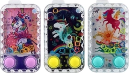 Vodna igra Samorog je odličen način, kako otroke zabavati in hkrati razvijati njihovo zbranost ter potrpežljivost. Načelo je preprosto, a zasvojljivo: s pritiskanjem gumbov poskušate spraviti plavajoče obročke na stožce. Igra je na voljo v več različicah z motivi čarobnih samorogov.