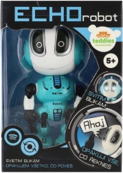 Zabavni govoreči robot Echo v kompaktni velikosti 12 cm ponavlja vse, kar izgovorite – dovolj je pritisniti gumb. Ponuja svetlobne učinke, zvočne funkcije in enostavno upravljanje z enim gumbom. Idealno za kreativno igro in razvoj govornih spretnosti otrok od 5 let. Baterije 3× AG13 so priložene.