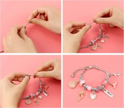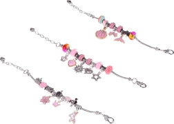 Ustvarite si edinstvene zapestnice povsem po svojem slogu. Ta komplet v srebrni izvedbi z rožnatimi in zlatimi poudarki ponuja pestro izbiro perlic in čarmov, zato bo vsak kos nakita original. Ustvarjanje hkrati spodbuja fino motoriko, potrpežljivost in ustvarjalnost – zabava, ki ima smisel.