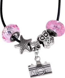 Mešanica rožnatih, srebrnih in zlatih poudarkov, voskanih vrvic in različnih oblik čarmov spodbuja domišljijo in razvoj fine motorike. Vsaka zapestnica bo edinstvena.