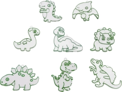Ta razširjeni komplet otrokom prinaša zabaven vstop v svet ustvarjanja. Posebne barve se preprosto nanašajo v vdolbene linije šablon, ne prelivajo čez robove in pomagajo ustvariti natančne ter izrazite obeske. Dokončane motive le še okrasite z dekorativnimi kamni in obesite na kovinske kroglične verižice – idealno za ključe, nahrbtnik ali kot dekoracijo v sobi.