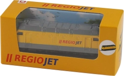 Izvirna 9 cm dolga lokomotiva regionalnega prevoznika RegioJet ne sme manjkati v sobi nobenega ljubitelja vlakov! Ta odličen kovinski model lokomotive je idealen kot darilo ali kot zbirateljski kos. Ob nakupu več kosov jih je mogoče preprosto povezati enega za drugim. Lokomotiva vozi na prosti tek. Tirna širina je 1,2 cm.